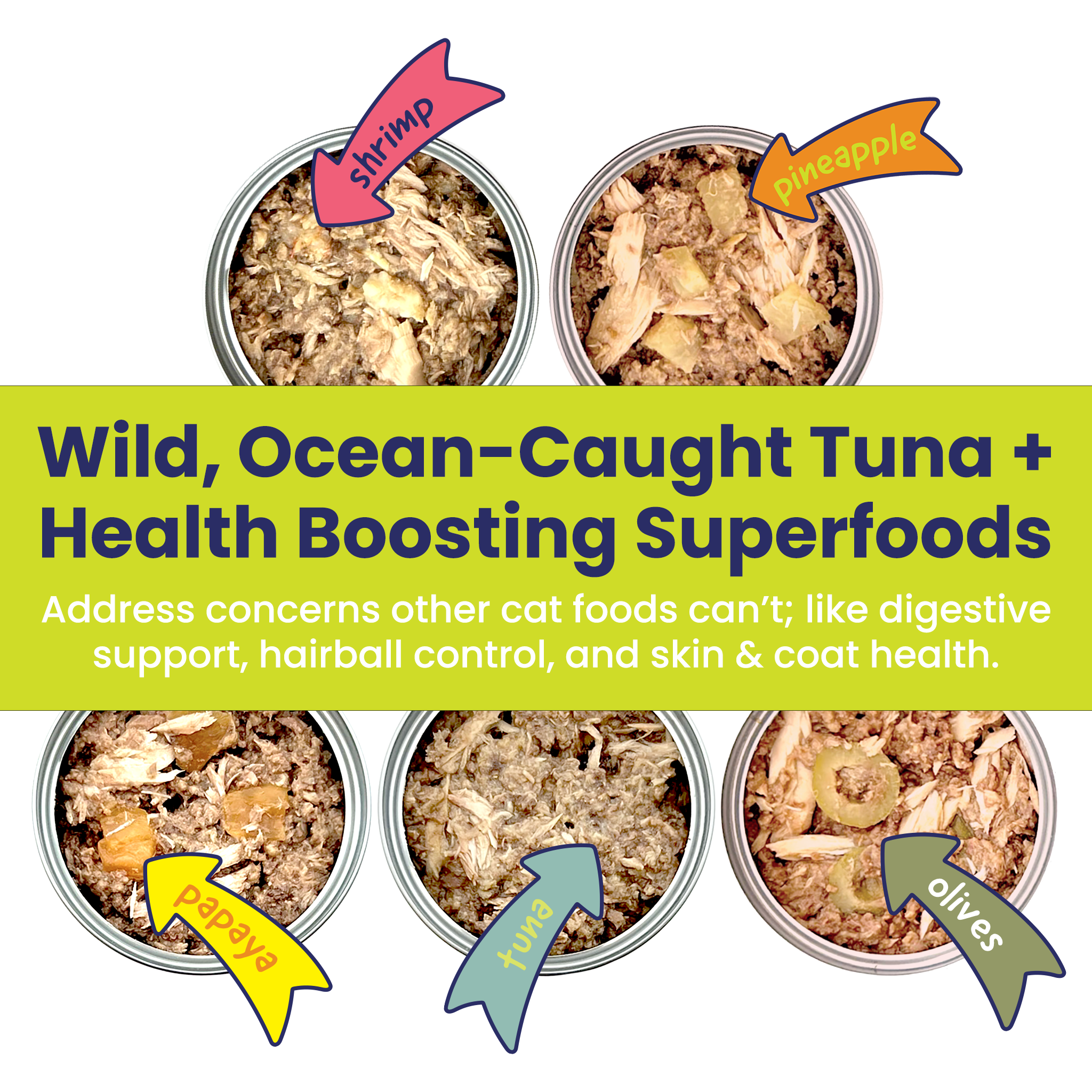 Think your cat will turn up their nose? Think again. Our Tuna Variety Pack is designed for picky eaters, flavor fanatics, and the “I-only-lick-the-broth” crowd alike. Every recipe starts with wild-caught tuna—the good stuff cats naturally crave—then gets an upgrade with tasty, functional add-ins that bring real benefits to the bowl.