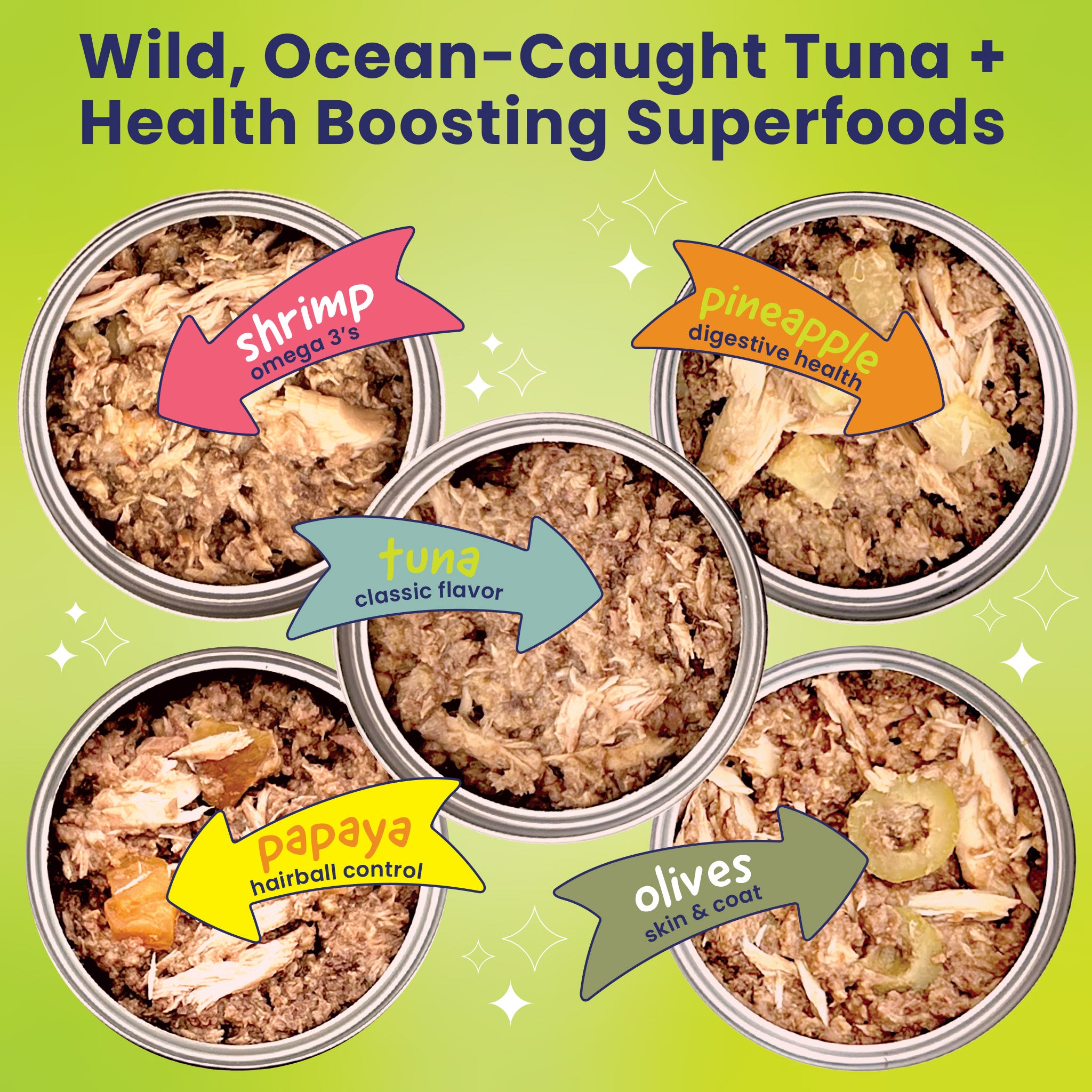 Tuna & Pineapple – Tropical vibes + digestive support.