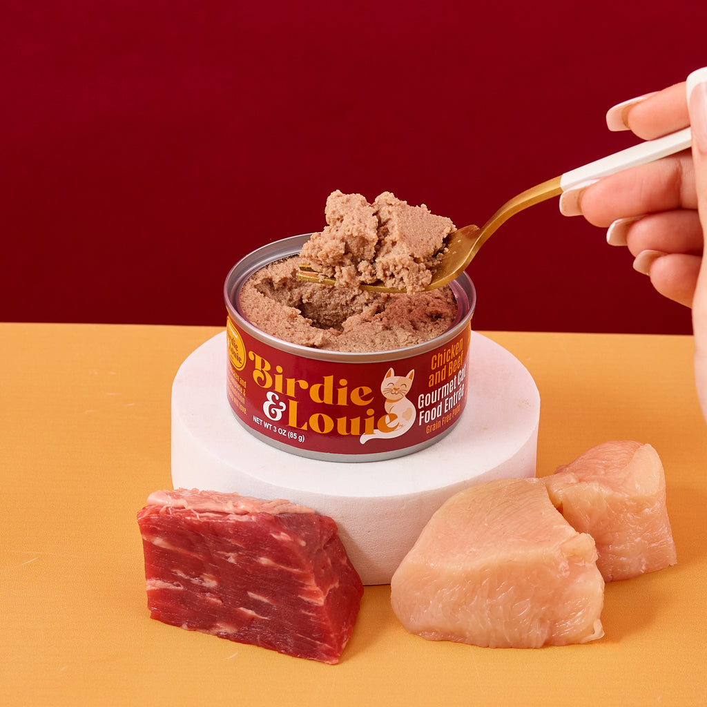 Got a picky eater who thinks they’re a gourmet critic? Birdie & Louie’s got them covered with our unbeatable Ocean Caught Tuna recipes, and our hearty Chicken pates! This combo is a powerhouse of superfoods that gives kitty the variety they are looking for. The result? A flavor-packed, protein-rich feast that’s bursting with vitamins, minerals, and antioxidants. It’s the ultimate combo of taste and nutrition, designed to turn even the fussiest eaters into loyal fans. No fillers, just superfood goodness in every bite. Birdie & Louie: the flavor they crave, the nutrition they deserve!