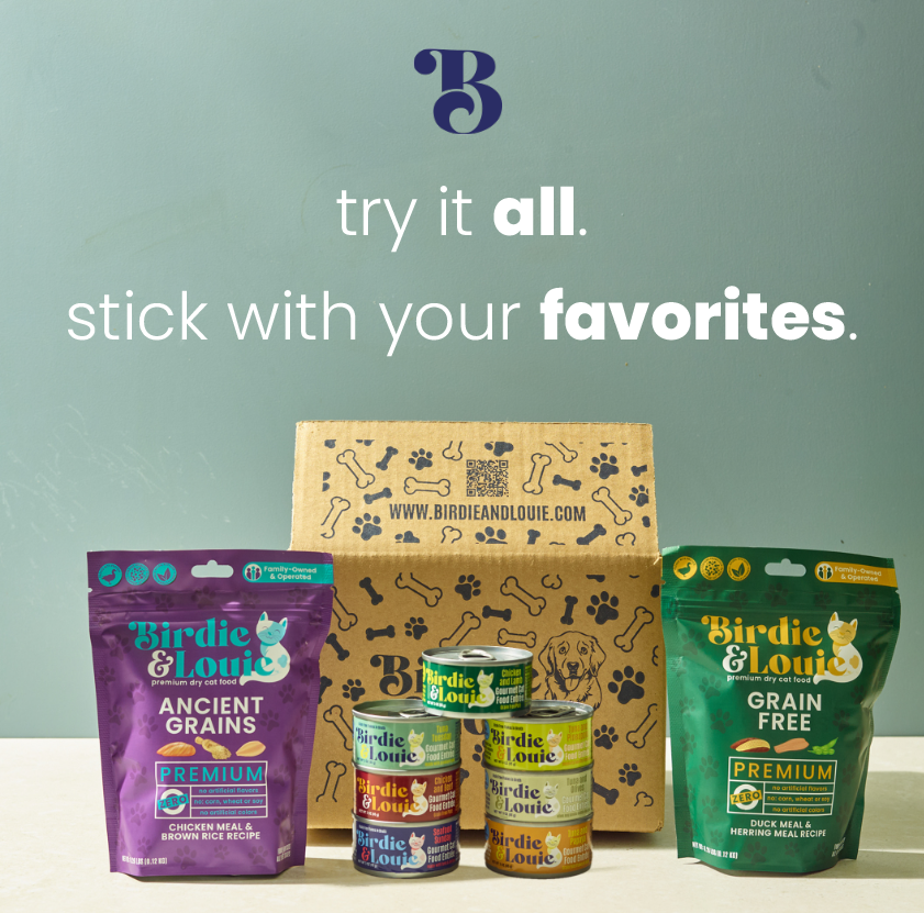 Cats are picky eaters. One day they love something, and the next they want something else. It’s like they’re food critics. That’s why owners of picky cats keep asking us for a sample of everything we have. They know that just because a cat doesn’t like something today, it might be their favorite next week. There are two big factors in the cat food game–variety, and deliciously healthy. Most cat owners need both. Welcome to Birdie & Louie. We’re here to keep you stocked up with a variety of nutritionally balanced, complete formulas that meet AAFCO standards.